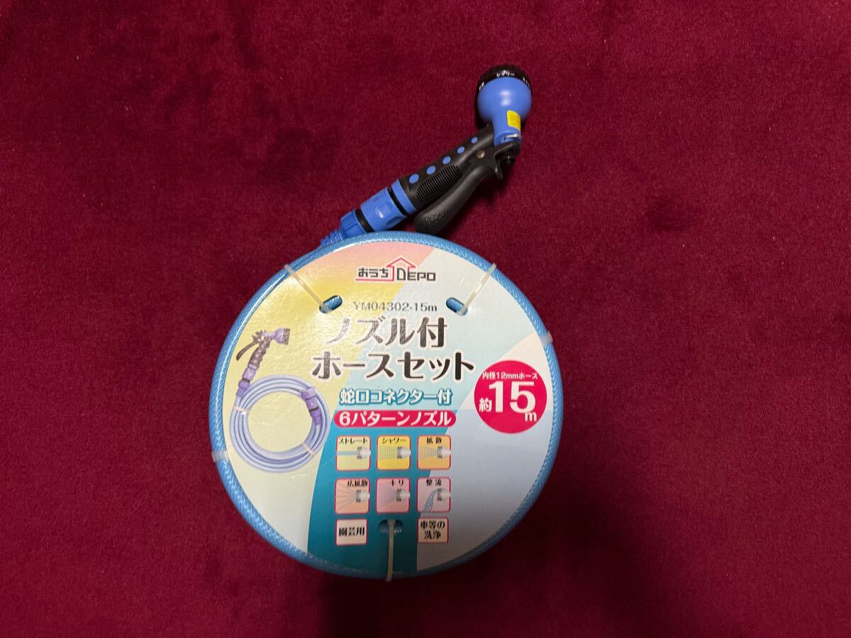 - おうちDepo ノズル付きホースセット蛇口コネクター付き 6パターンノズル 約15m 新品未使用
