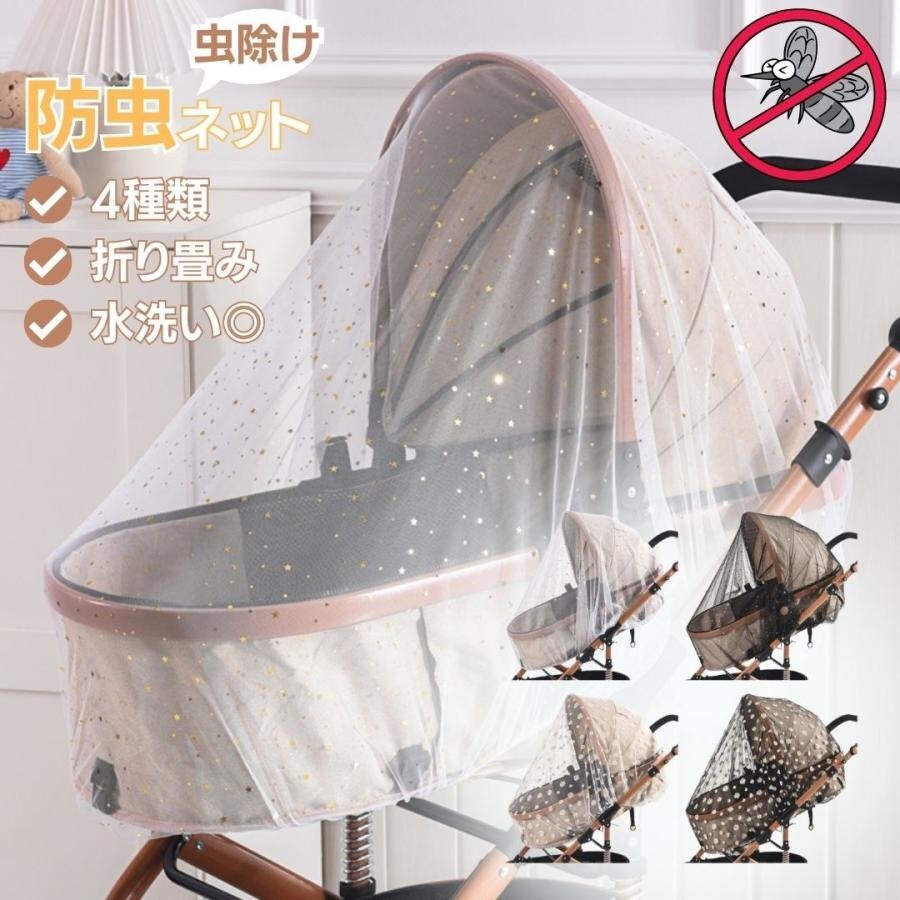 - 【2カラー】【2種類から選択】【※購入後メッセージ下さい】ベビーカー 防虫 シェードネット メッシュ スター 星 フラワー Flower