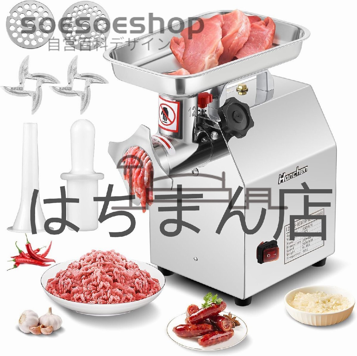 - 電動ミンサー ミンチ機 6/8mmプレート付き 180KG/H 肉ひき/野菜/みじん切り/腸詰めノズル付き ステンレス製 水洗いでき 1300w (ミンサー)