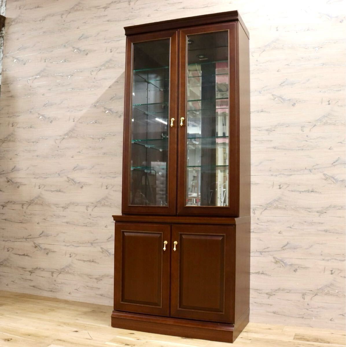 - GMHS578○maruni / マルニ 地中海 キュリオケース 飾り棚 ハイボード キャビネット マホガニー材 ヨーロピアン 定価約35.8万