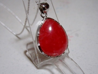 - つやつや濃厚ピンクのぷっくりドロップ型のインカローズのシルバーネックレスNO.2