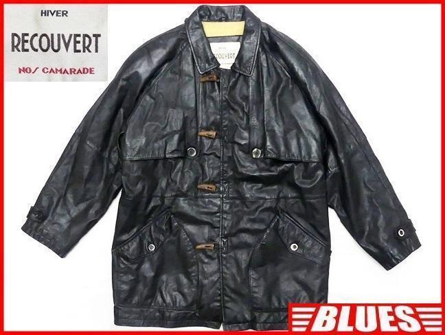 > 即決★RECOUVERT★メンズM レザーダッフルコート リコウベルト 黒 ブラック 本革 ジャケット 本皮 トグルボタン 革ジャン