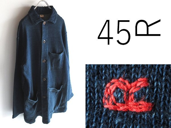 > 45rpm R刺繍 ウッドボタン/木釦 襟ダック地切替 裏毛 スウェット カバーオール ジャケット 3 藍色 インディゴ 日本製 Umii908 Badou-R