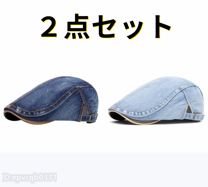 - 2点セット※ハンチング キャスケット カウボーイハット メンズキャップ 紳士 帽子 ゴルフキャップ フリーサイズ ライトブルー/ブルー