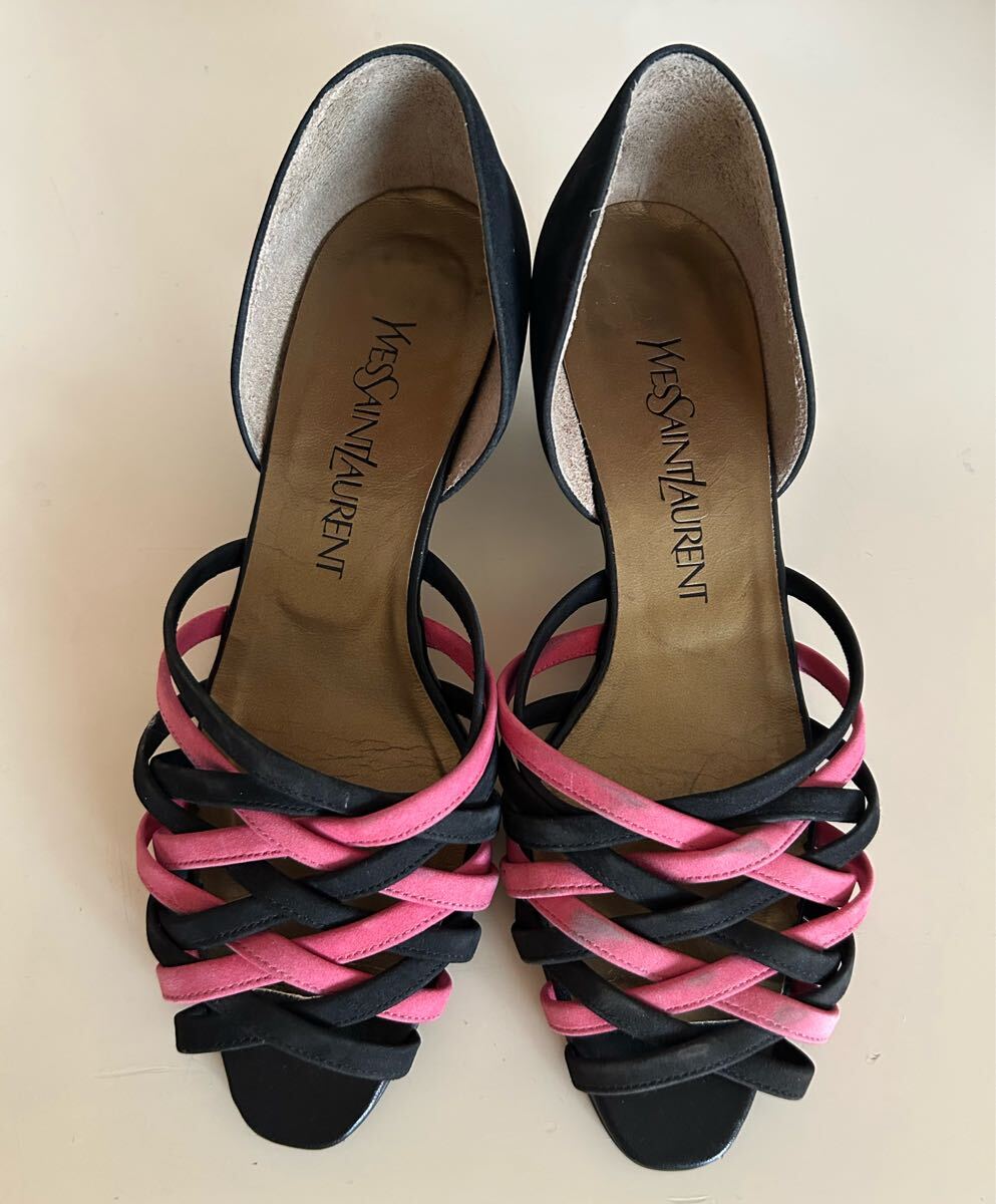 - 即決イヴ・サンローラン パンプス サンダル 靴 36 約23cm ピンク&黒 Yves Saint Laurent 送料無料