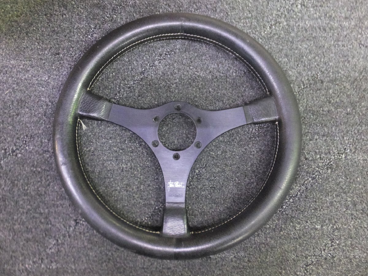 - 【希少・中古品・現状販売】MOMO モモ ジャッキー スチュワート レザー ブラック 黒 ステアリング ハンドル 35Φ