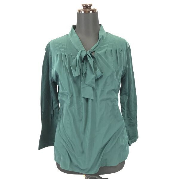 - MICHEL KLEIN★ボウタイシャツ/シフォン切替/七分袖カットソー【women’s size -38/緑/green】Tops/Shirts◆BH236