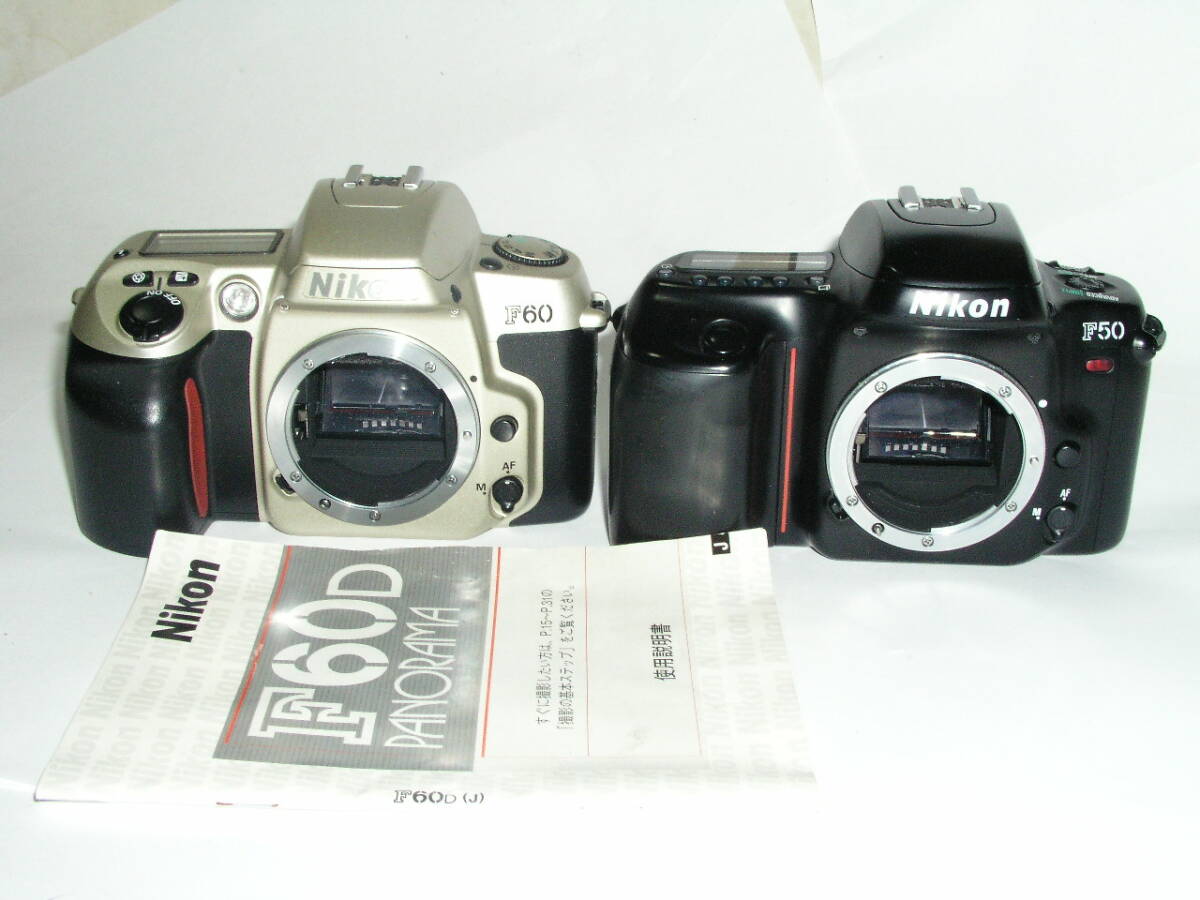 - 7736★★ Nikon F60 シルハー + F50 フラック、ホティx2台て、F60のみ説明書あり ●2370