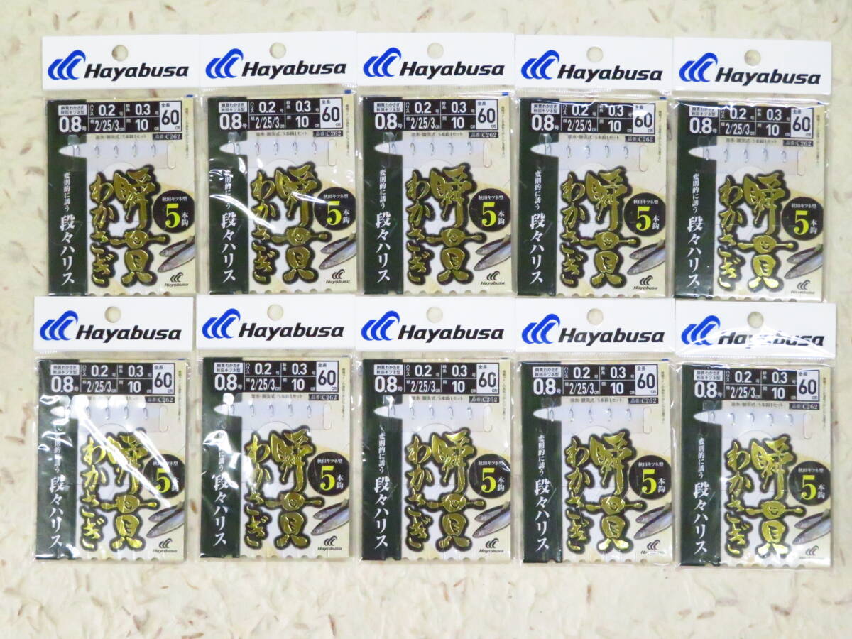 > C262 ハヤブサ 瞬貫わかさぎ 段々ハリス 0.8号 10個セット 5本鈎 秋田キツネ型 ワカサギ仕掛け 5本針 ワカサギ 隼 狐