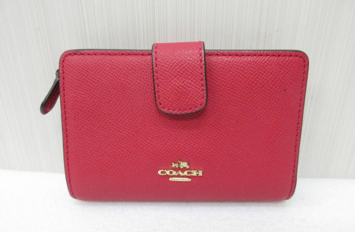 - COACH コーチ F54010 二つ折り 財布 ミディアム コーナージップ ピンク a