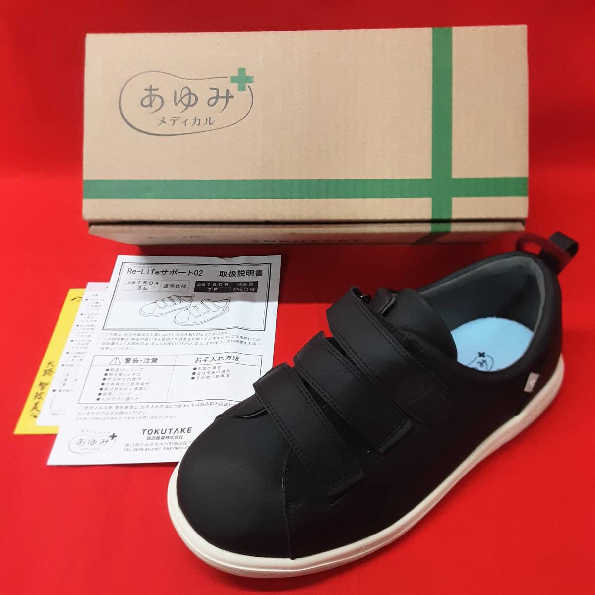 > ★☆あゆみ 介護用シューズ リハビリ用 Re-Lifeサポート02 7E ブラック 3L 25.0~25.5㎝ 左足 TOKUTAKE 徳武 (80)☆★