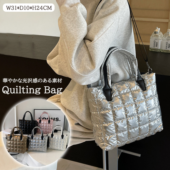 - Kinshuu レディース キルティング 3way ショルダーバッグ ミニトートバッグ ゴールド