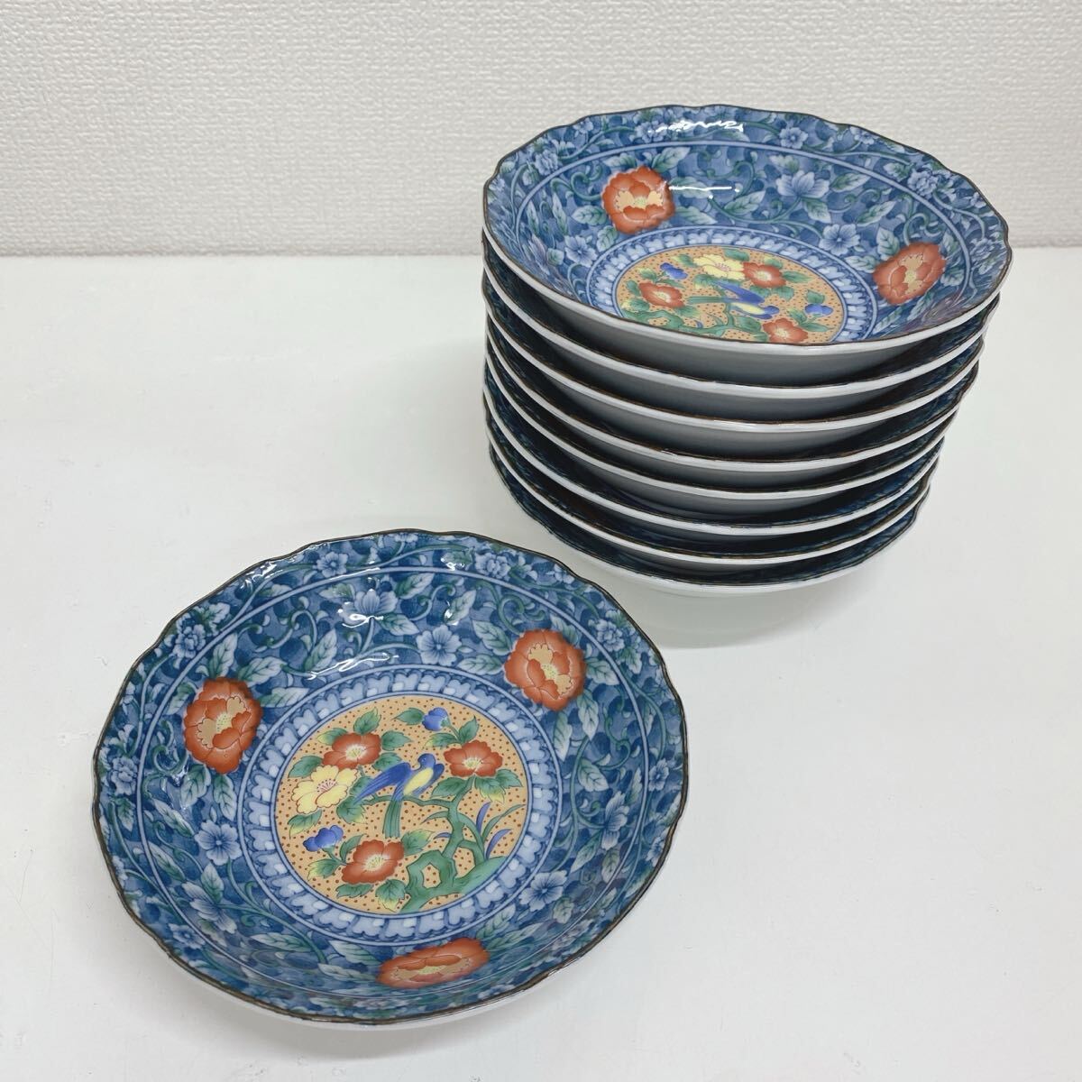 - refle● 有田焼 嘉山窯 花鳥柄 小皿 取り皿 約13.5cm 9枚 現状品