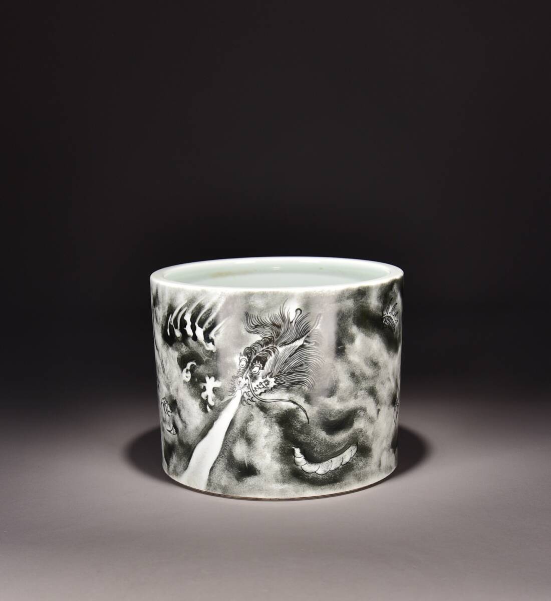 - ▽鴻▽ 清 乾隆年製款 墨彩 龍紋 筆筒 古陶瓷品 置物 古賞物 中国古玩 中国古美術