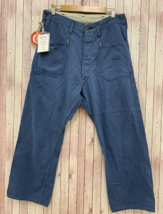 > タグ付き 未使用 キャントンオーバーオールズ CANTON OVERALLS ワークパンツ ボタンフライ ユーズド加工 M ブルー MK113