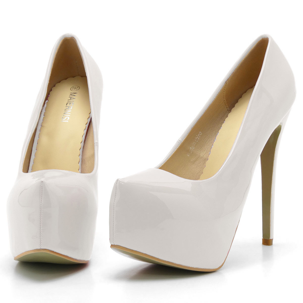 - 新品 大きいサイズ パンプス ホワイト 26cm 131415-42 エナメル調 前厚底ストーム ハイヒール