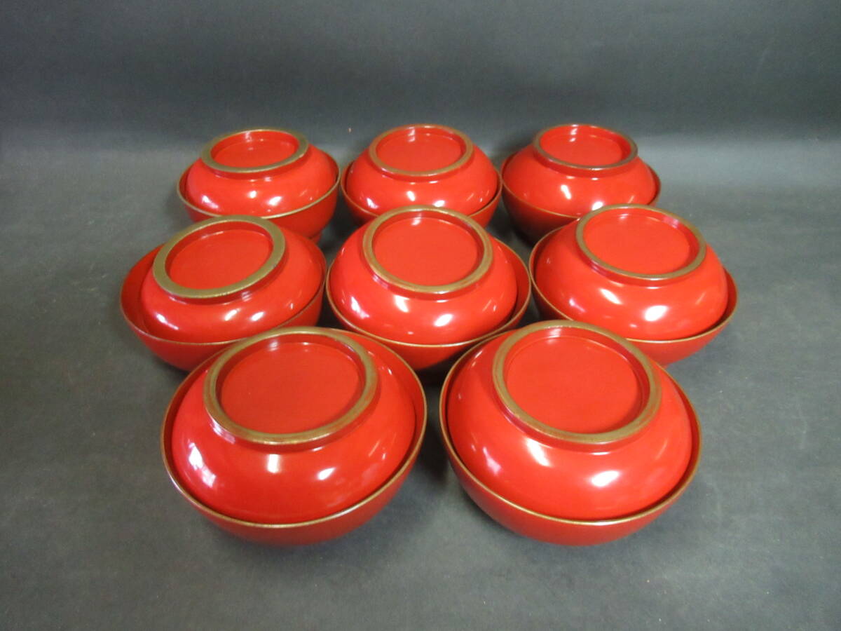 - 【広吉堂】輪島塗 菓子椀 木製 時代物 美品 8客(73L)