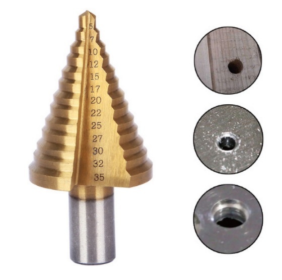 > 大型ステップドリル 5mm‐35mm 面取り バリ取り 穴あけ 拡張 錐 ドリルビット 丸軸 (ホールソー タケノコドリル),