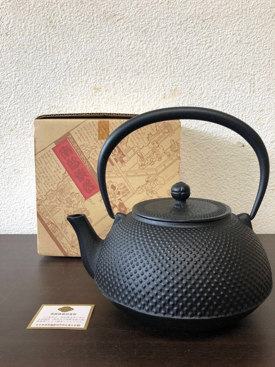 - 南部鉄器 旧家蔵 池永鉄工製丸霰鉄瓶 未使用新品 紙箱付 風炉 盆点前 茶箱 短冊箱 お稽古用 IH対応 古玩 煎茶道具 茶器 鉄 1.4L