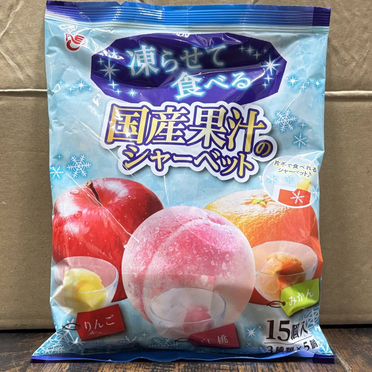 - 凍らせて食べるひんやり果汁シャリっと広がる!国産りんご・桃・みかんの爽快シャーベット15個入(3種類×5個)×10袋-E177