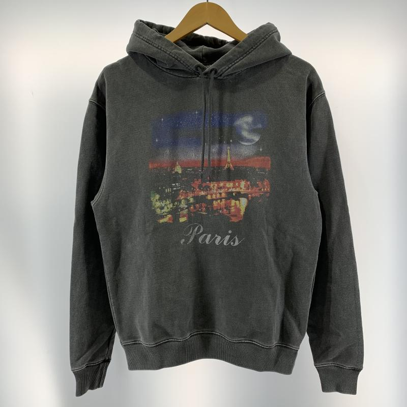 - 【中古】BALENCIAGA 17SS PARIS PRINT PULLOVER HOODY サイズXS グレー バレンシアガ パーカー[240019477108]