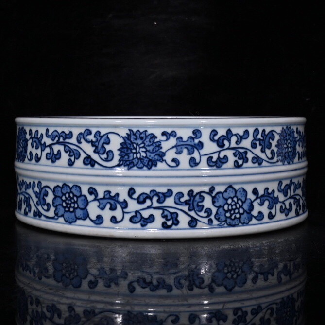 - ▽鴻▽ 清 乾隆年製款 青花 纏枝蓮三果紋 筆洗 古陶瓷品 置物 古賞物 中国古玩 中国古美術