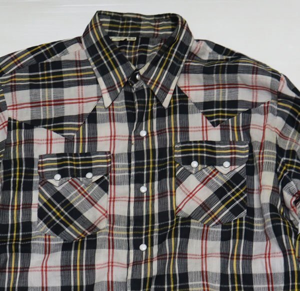 > LS74ウエスタンシャツUNKNOWNアメリカ古着チェックシャツ長袖シャツ襟芯入り綿ポリ混アイボリー系x黒系他80’Sビンテージ16Hオールド&レ