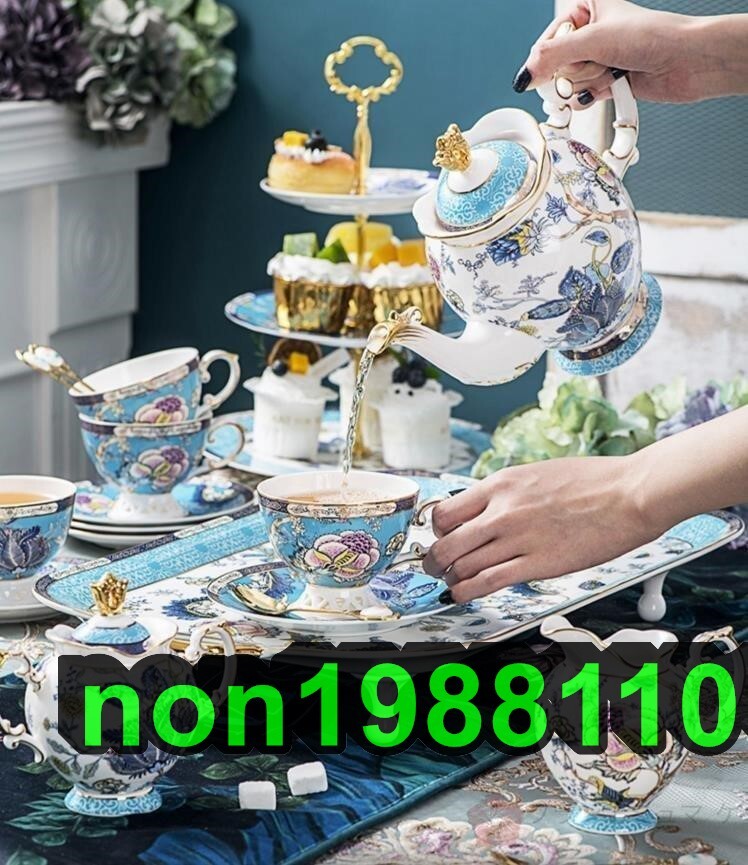 > 極美品 ティーポット&カップ&ソーサー&ミルクポット&シュガーポット 16点セット 洋食器 インテリア アフタヌーンティー