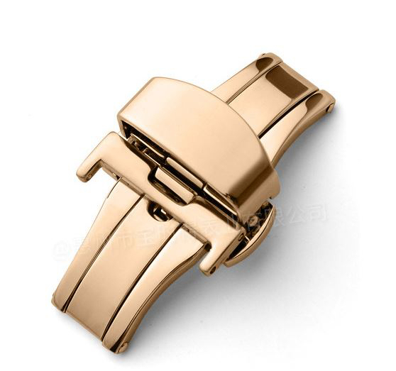- 送料込み プッシュ式観音開き・Dバックル・尾錠幅18mm・ピンクゴールド色・時計ベルトをおしゃれにランクアップ バンド傷み軽減