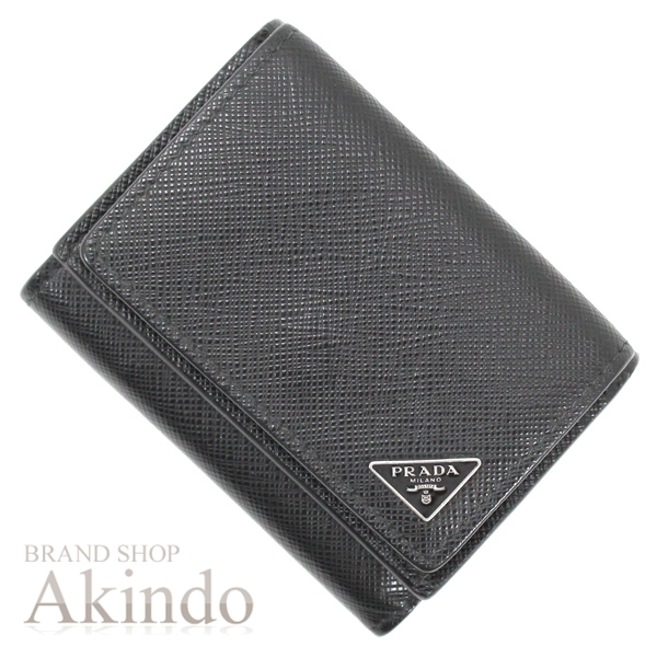 - プラダ 三つ折り財布 ミニ コンパクト スモール 黒 ブラック 三角プレート サフィアーノ レディース メンズ PRADA 1MH021