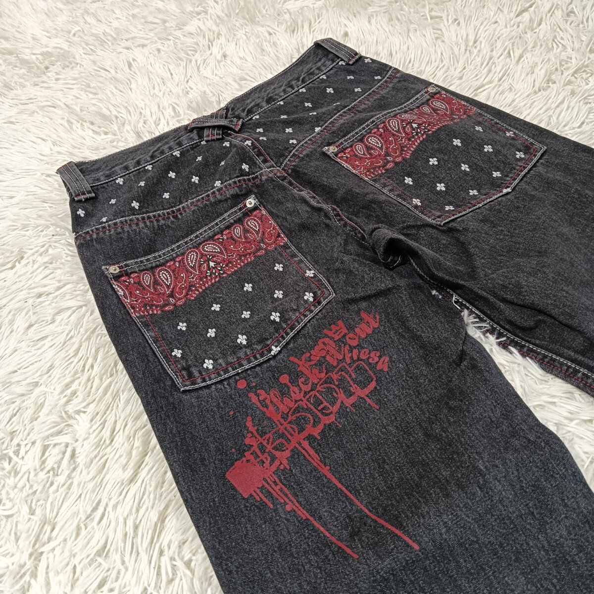 - 美品★RATON LAVEUR 先染めブラックデニム パンツ ジーンズ ユリの紋章 ペイズリー size82 アーカイブ オールド ラトンラヴール Y2K 古着