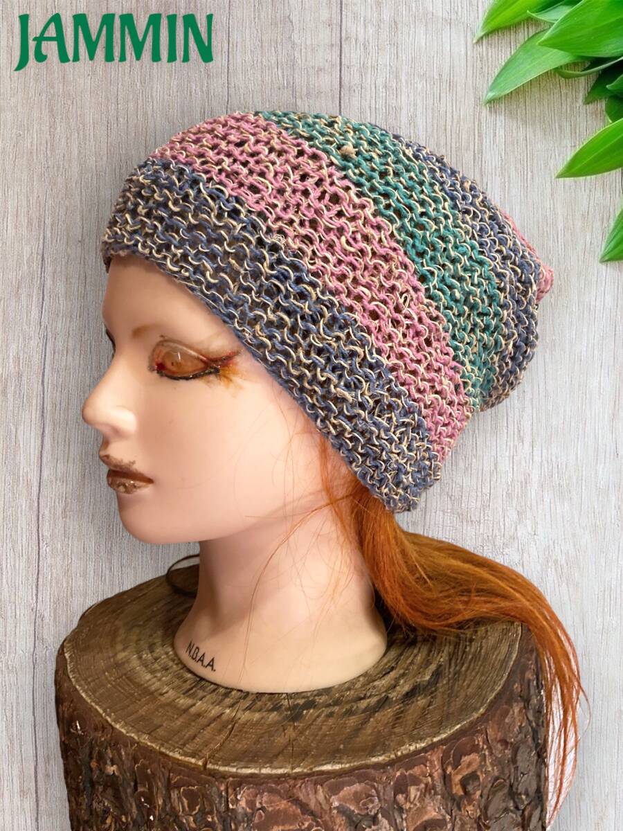 - ヘンプコットンニット帽 麻 アジアン エスニック ヒッピー 個性派 帽子