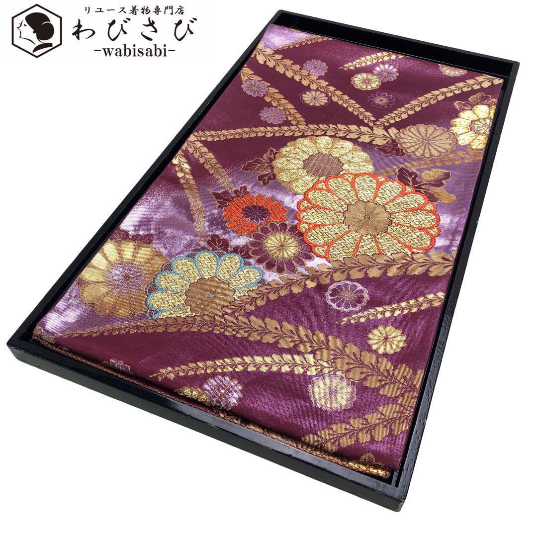 - 袋帯 菊の花模様 金糸 赤紫色 振袖 O-4930 着物 きもの kimono 和服 和装 中古 リサイクル着物 【送料無料】