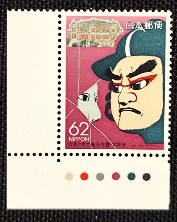 - [25040456] ふるさと切手【大阪府】単片 CMカラーマーク付「文楽と中之島公会堂」62円 1989年発行 美品