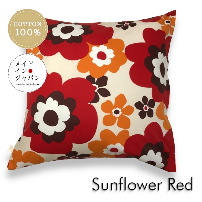 > 大判クッションカバー サンフラワー レッド 北欧 赤 花柄 60×60cm 綿100%