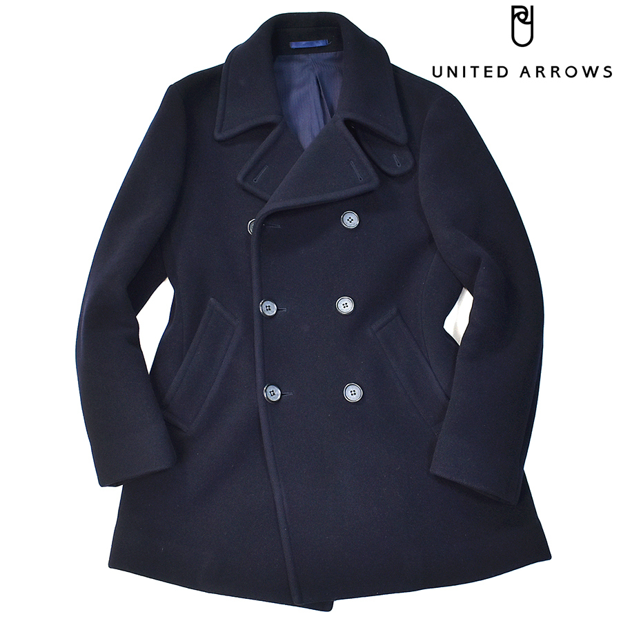 > 【定価5万】 ユナイテッドアローズ 洗練◎!! 繊維の宝石 カシミヤ混 Pコート メンズS ダークネイビー united arrows ウール 紺