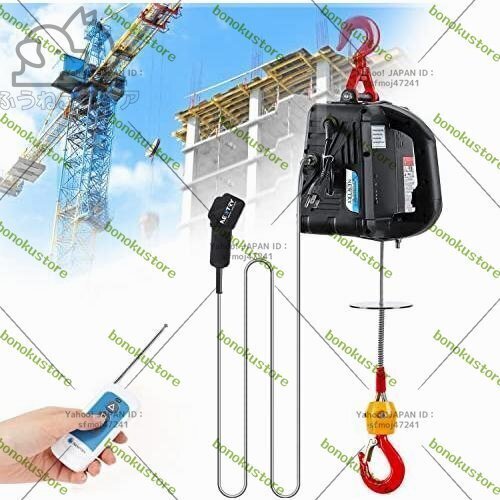 - 人気推薦◆電動ウインチ 小型クレーン 吊り上げ能力100kg 1500W 業務用 110V(リフト高さ25m) ワイヤレスリモコン制御+ワイヤ制御+手動制御