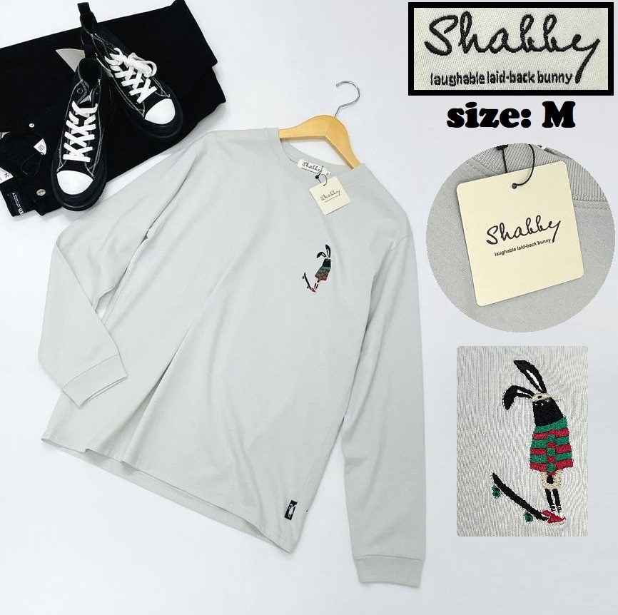 > Shabby /M/ グレー ロンティ 長袖Tシャツ タグ付き トップス スケボー刺繍 生地コットン バイク アウトドア キャンプ スポーツ シャビー