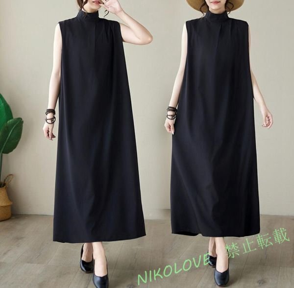 - 新品夏 森ガール シャツワンピース ロングワンピ ノースリーブ 大きいサイズ 綿麻 着痩せ 大人 マキシワンピース ロング丈 L LH571