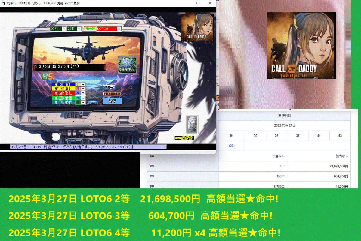 > 新作 [的中LOTOチェッカーミリタリーLOOK2025覚醒] ロト予想ソフト 2025年3月27日 LOTO6 2等 21,698,500円 高額当選★命中