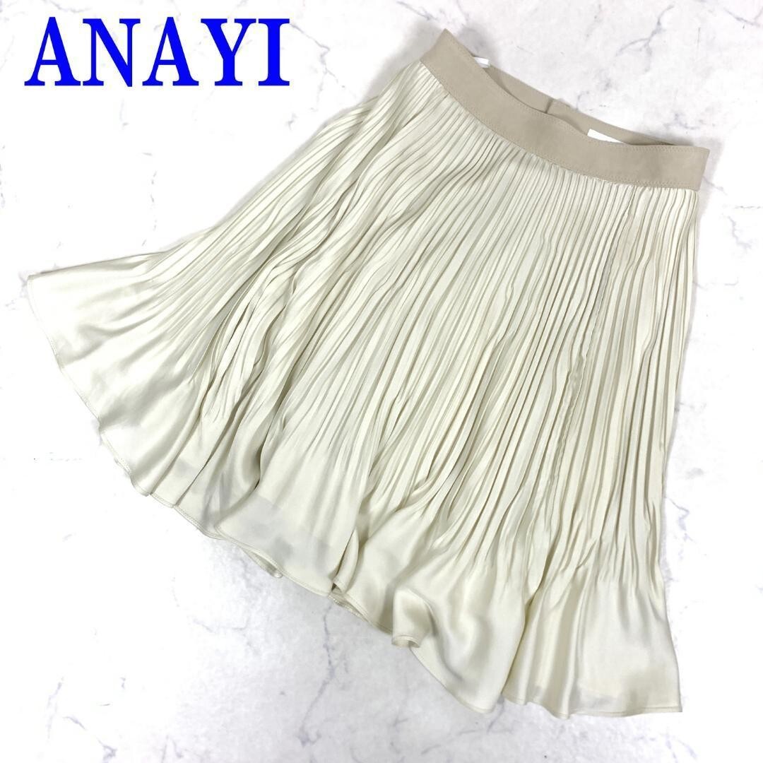 > ANAYI アナイ スカート クリームイエロー 白 ホワイト アイボリー プリーツ サテン フリルポリエステル 38 C2510