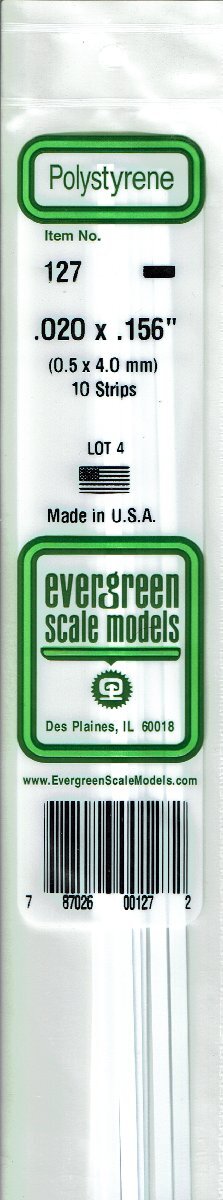 - エバーグリーン .020x.156 プラ棒 0.5x4.0mm 10本入り