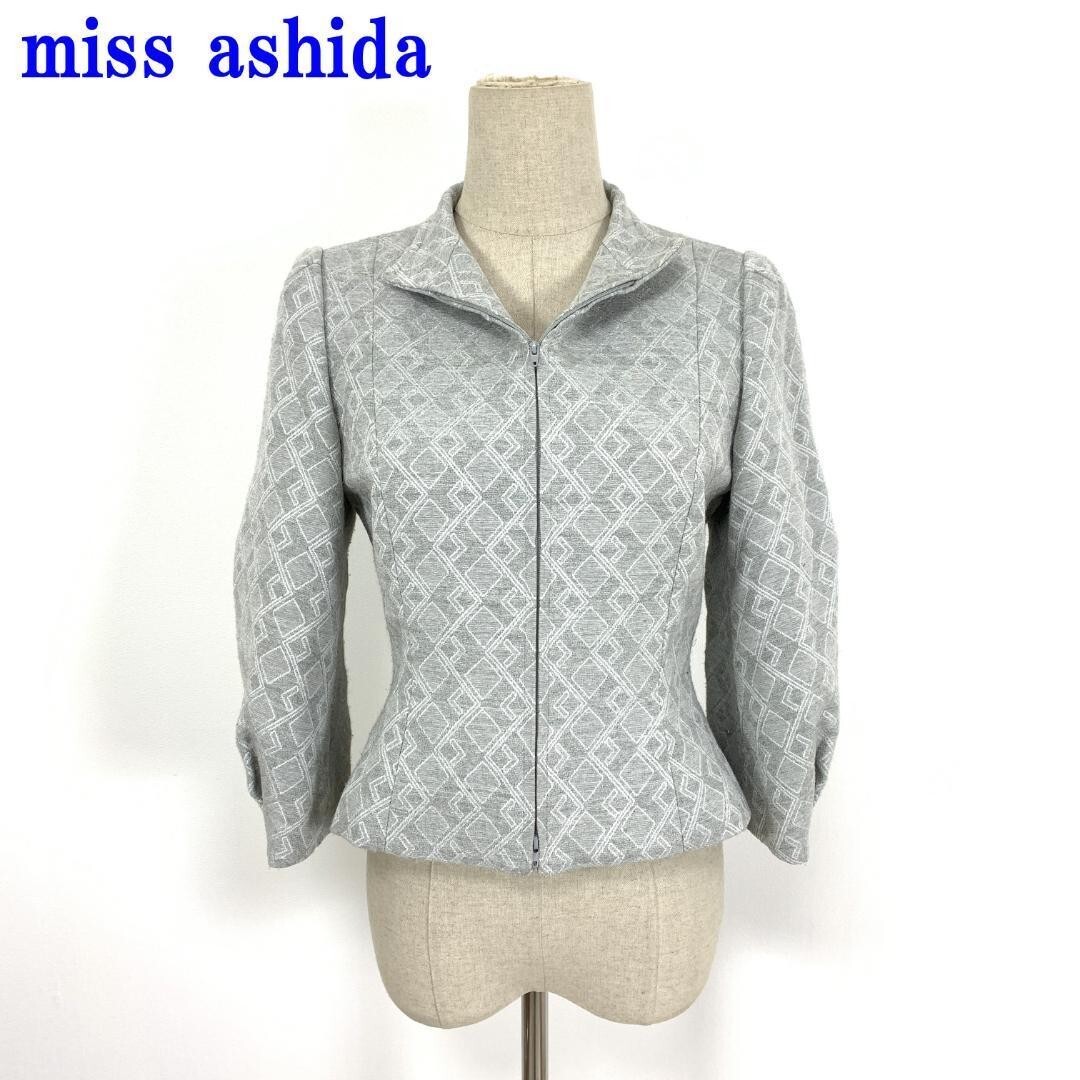 - ミスアシダ ジャケット 七分袖 綿 コットンmiss ashida ジップアップ 裏地有 グレー 7 C2320