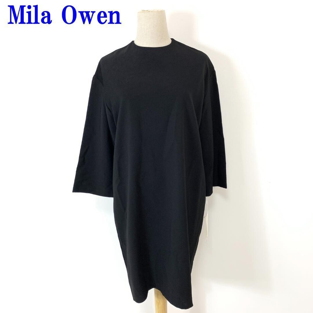 - 新品タグ付 ミラオーウェン 長袖ワンピース 黒 ポリエステルMila Owen ブラック コクーンワンピース ポリエステル100% 1 C2563