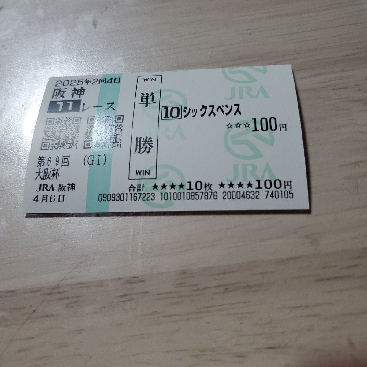- 現地購入第69回大阪杯シックスペンス