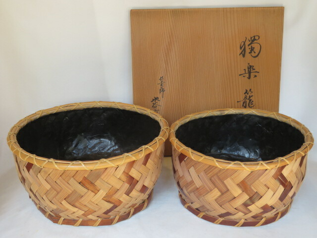 - (四月◆特売品)三重県篭師 水谷六々斎作 独楽籠 大小一双 炭斗 茶道具【税込・送料込】【中古・美品】