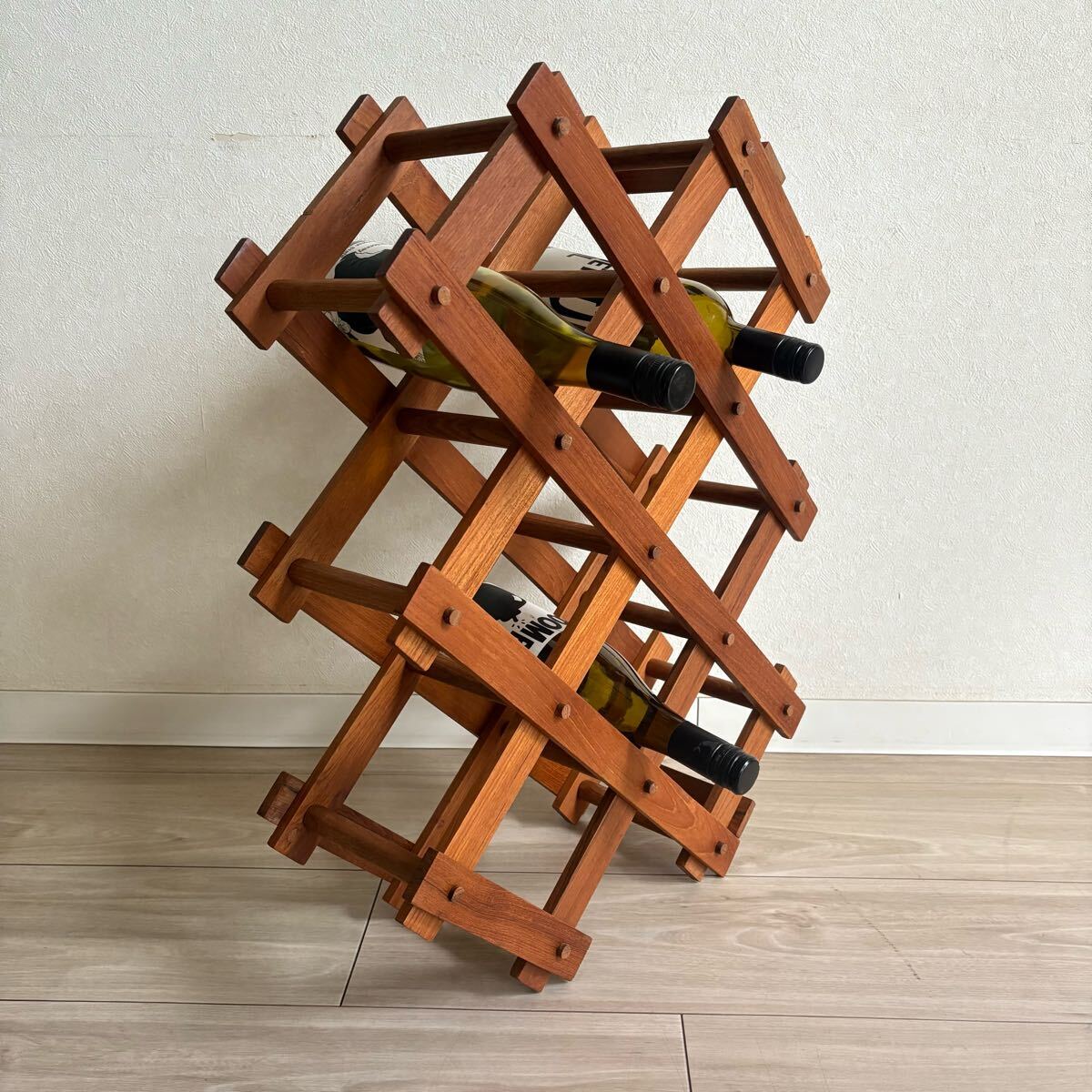- 北欧ビンテージ チーク無垢材 折りたたみ式 ワインラック 8本