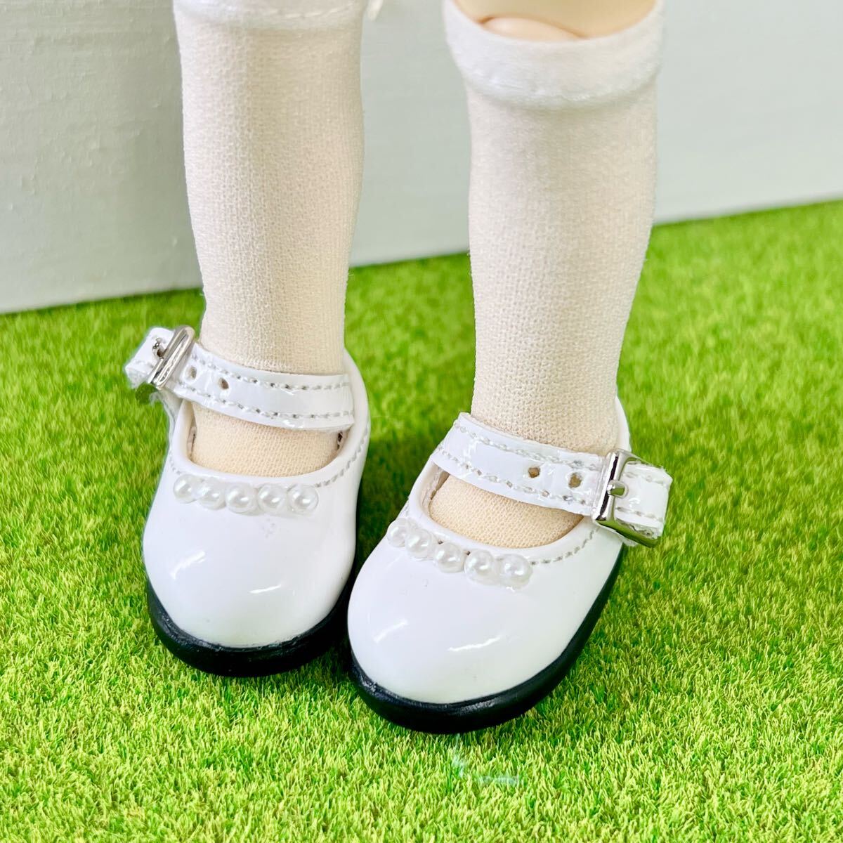 - 【精天使用】ホワイト ストラップ シューズ 靴 白 樹脂パールビーズ