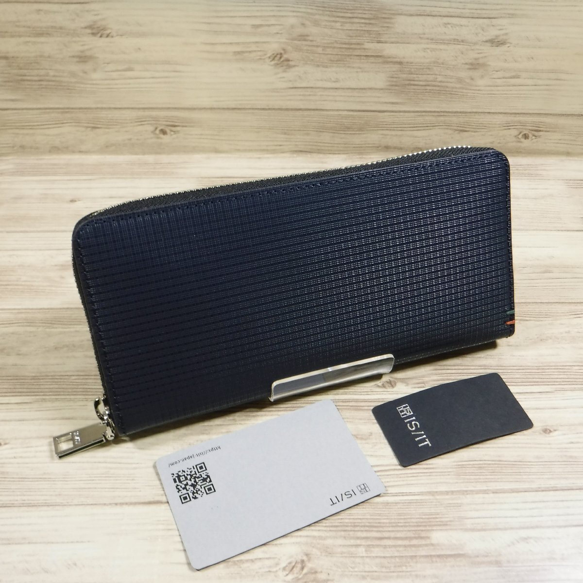 - QQ72 イズイット 新品 定価17050円 ラウンドファスナー長財布 イタリア牛革 IS/IT ネイビー 979605 カード18枚収納 BOX型小銭入れ