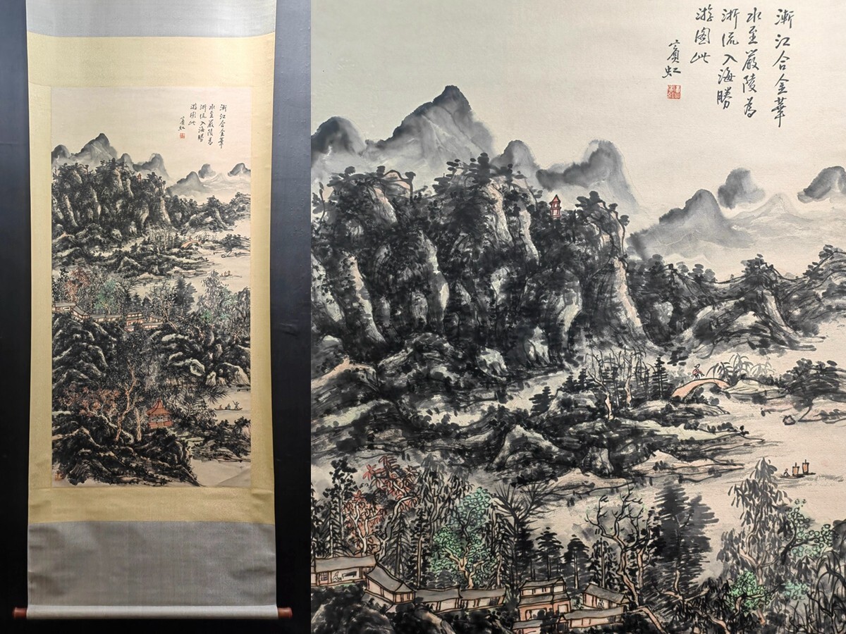 - 中国書画「黄賓虹 山水人物図」肉筆紙本 掛け軸 墨寶妙品 書画立軸 巻き物 古美術 旧蔵出